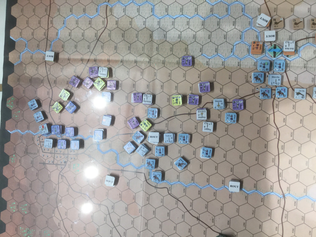 Mellan Oberglau och Lutzingen är också den franska linjen i kollaps. Min yttersta infanterivänster fortsätter sin framryckning över ån mot en vikande Rantzau.