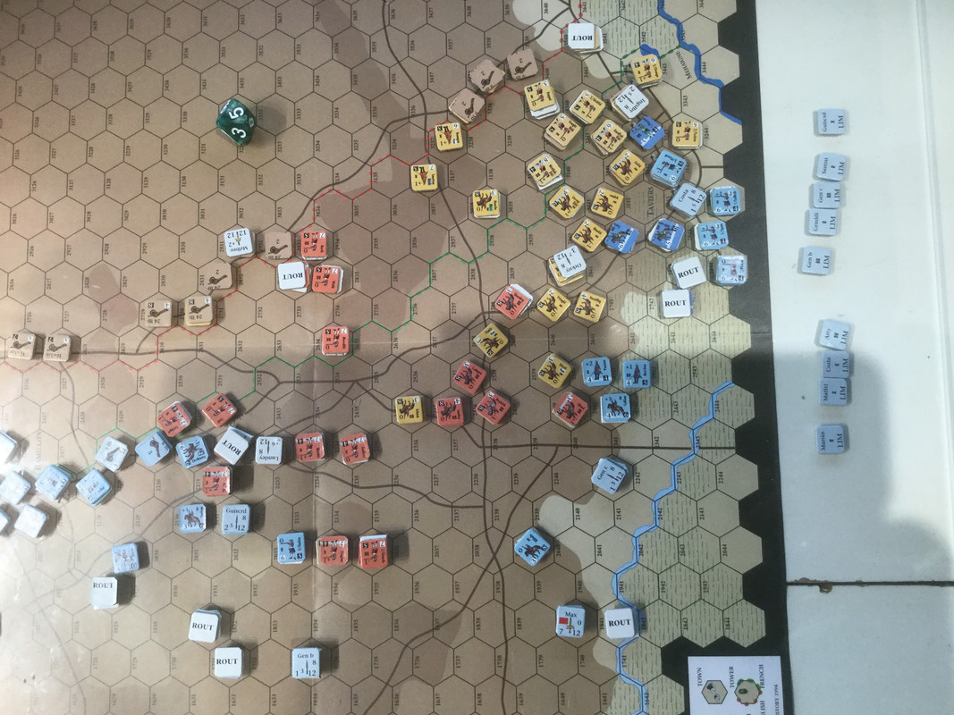 Den franska högerns kollaps accelererar, men i slow motion liksom...  det britttiska infanteriets underprestation är snudd på legendarisk.