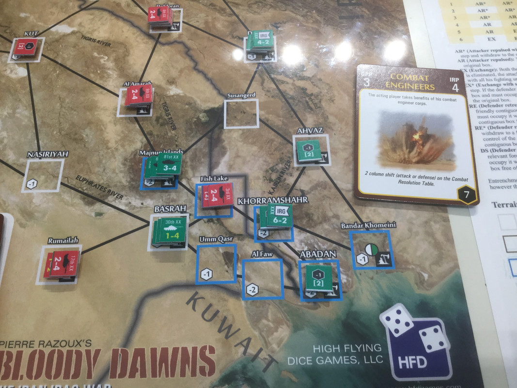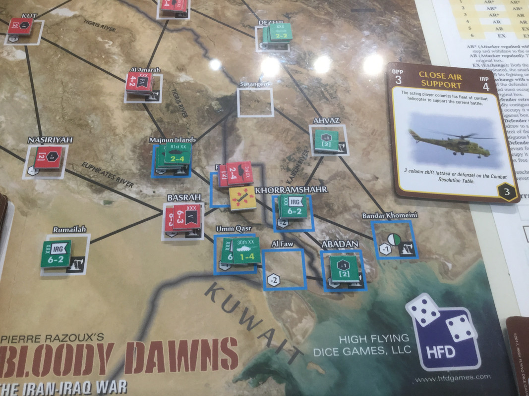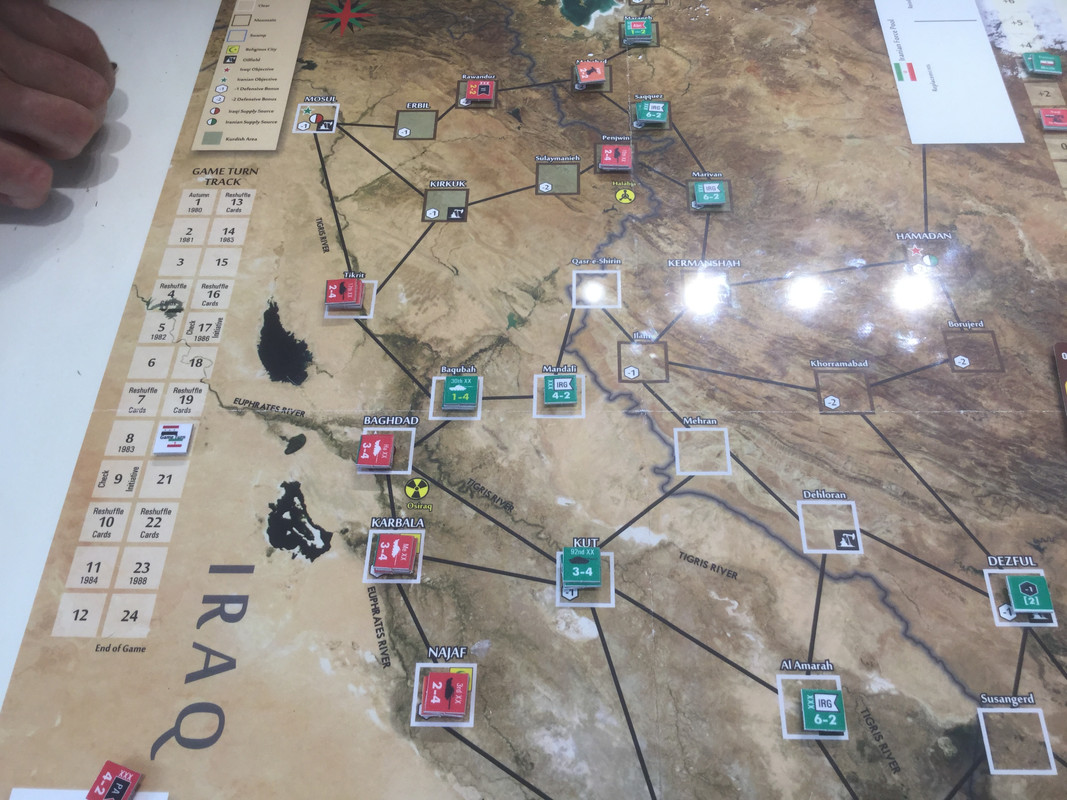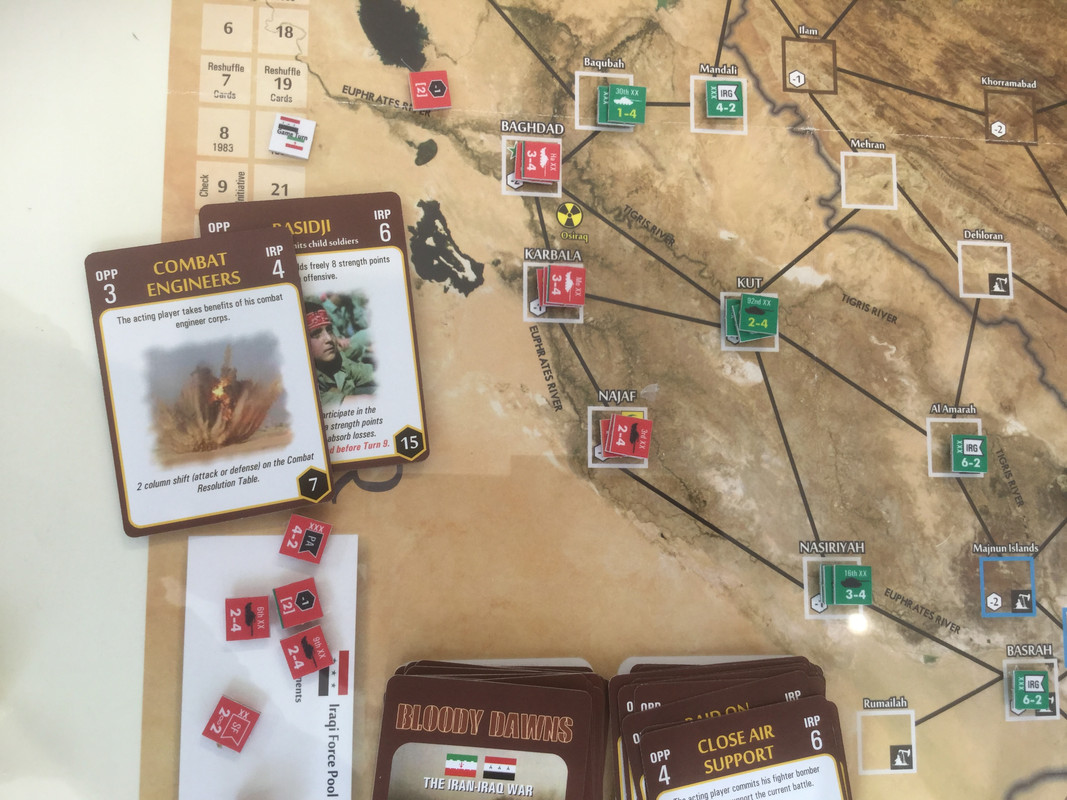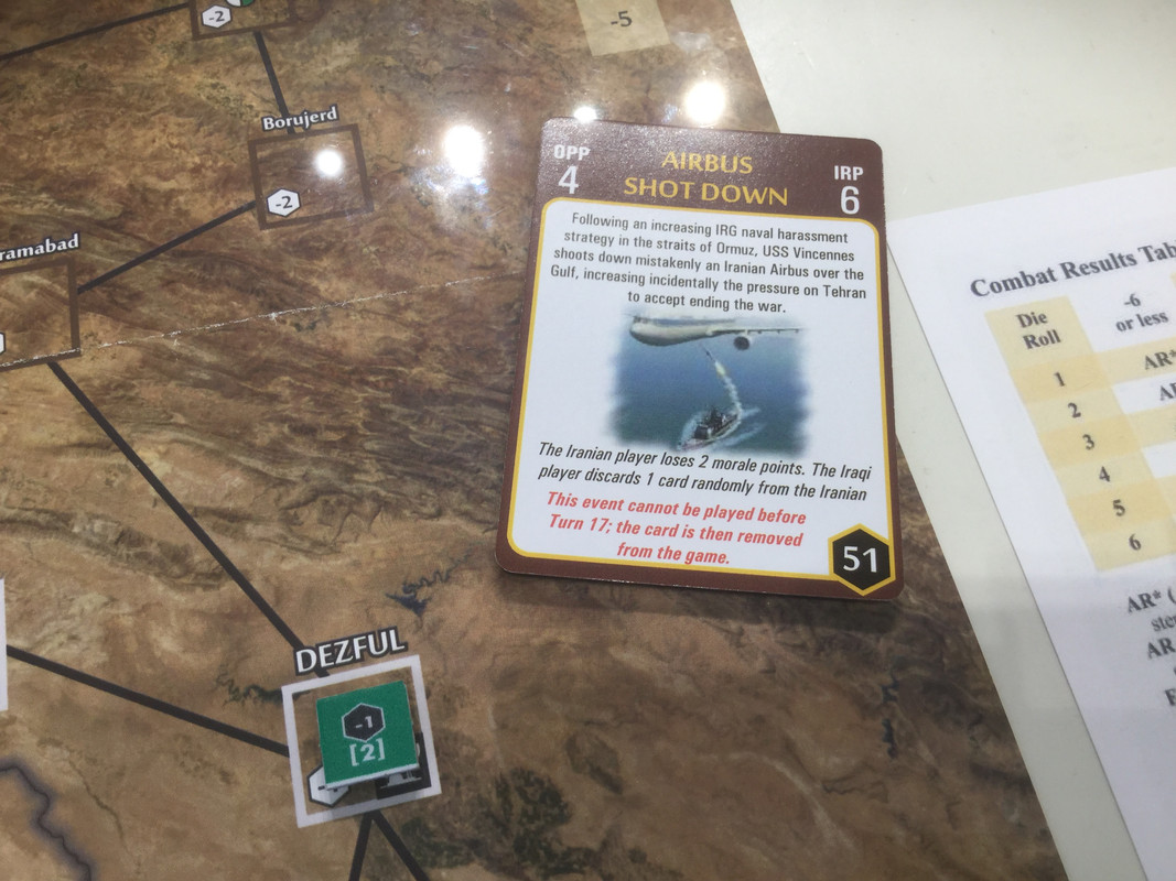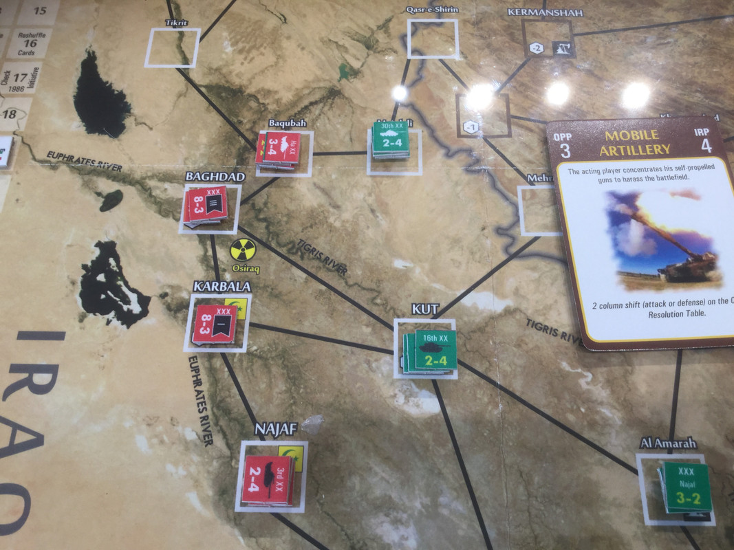 Med sina bristande resurser, jag sitter nu på nästan alla oljefält, lägger irakierna resurserna på ett ersätta förluster och hamstra bra stridskontakt. En händelse spelas dock. Kanske för sent? Det finns ett antal kort som gör att USA blir allt mer gramse påIran och vidtar åtgärder som sänker Irans moral och vilja till krig. Nu kommer de lite sent...