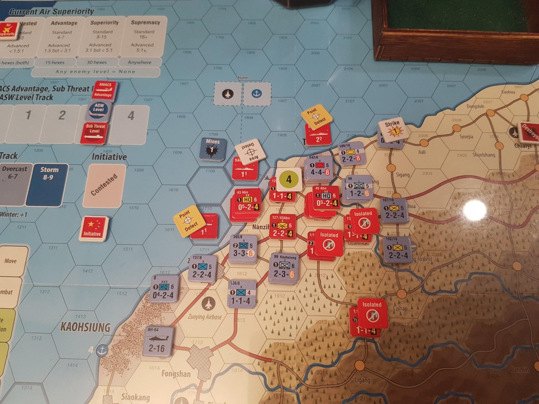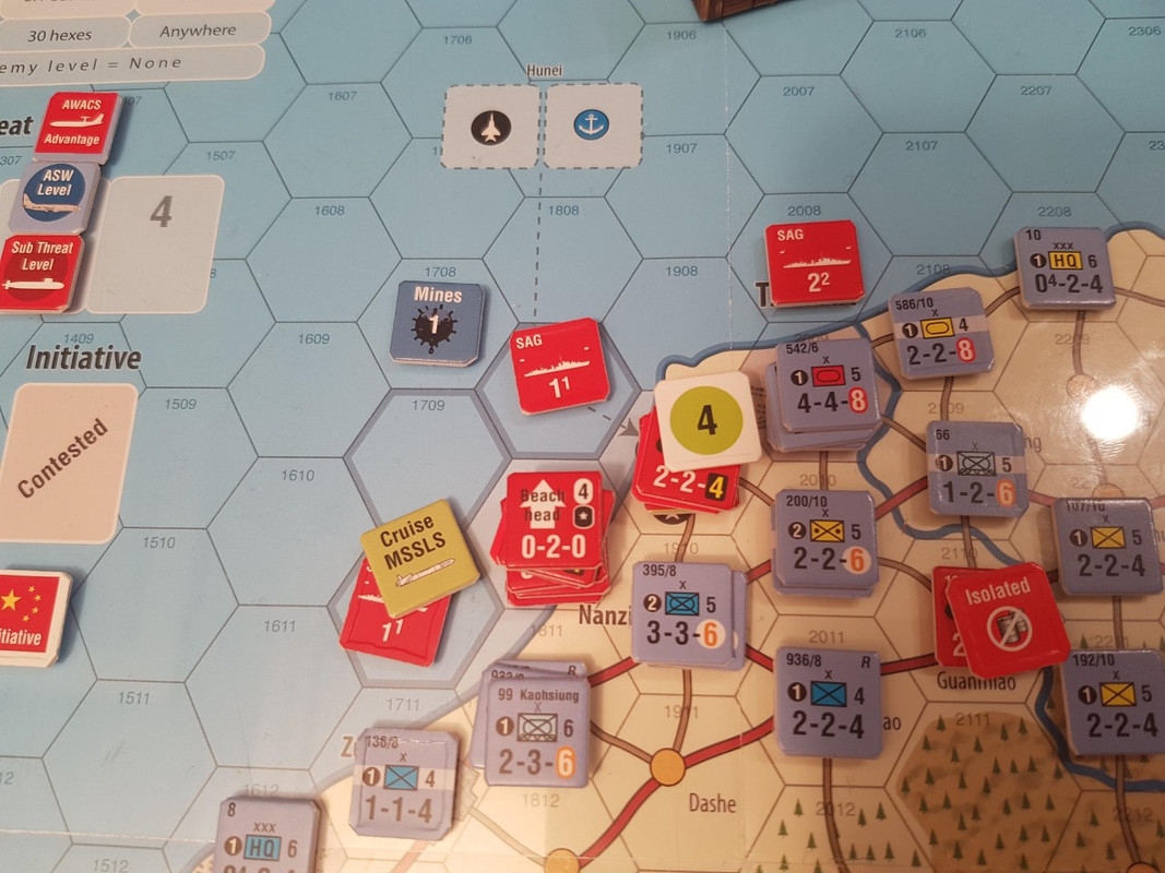 I huvudriktningen söderut så misslyckas man återigen med att rensa hamnen. ROC tar tillbaka en city-ruta och tre kinesiska förband ger upp efter nästan en veckas isolering. Nu håller PRC två rutor närmast stranden. Även med supply kommer det bli en brant uppförsbacke att lösa uppgiften.