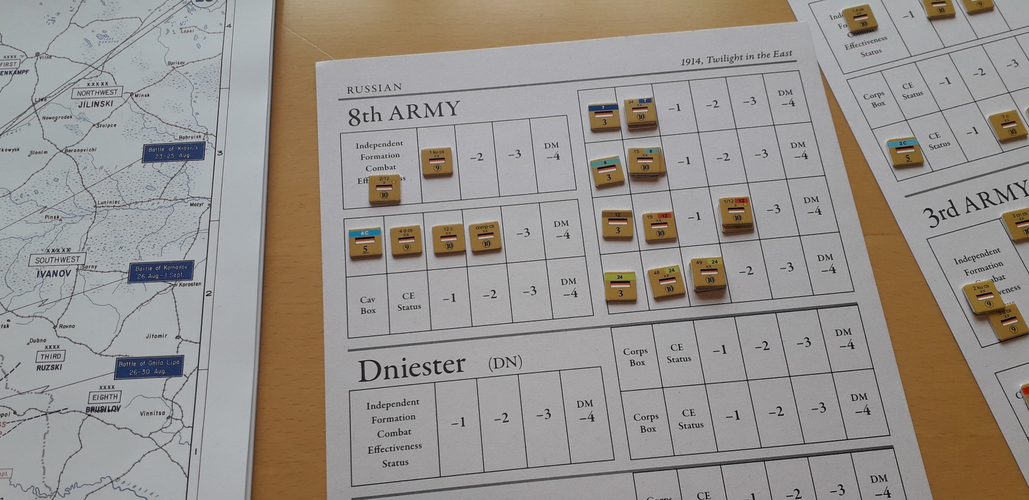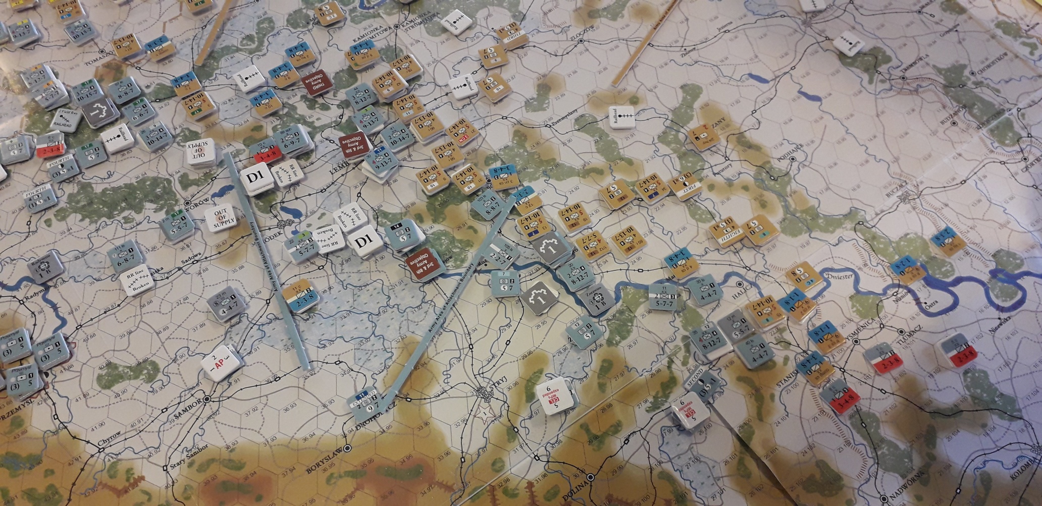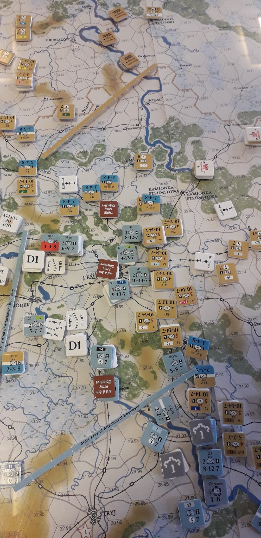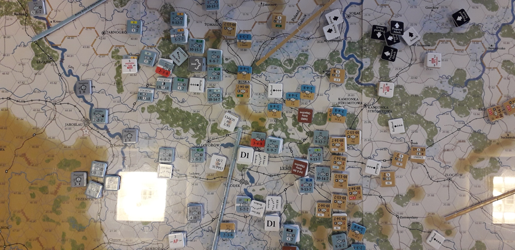 Under våra strider i Rimforsa så hade jag fullt upp med mina egna arméer och hängde inte med på vad som försiggick på andra sidan armé-gränserna. Ett område som jag inte följde var den västra delen där den starka Habsburgska 1:a armén hade i uppgift att erövra Lublin. På den ryska sidan fanns där den 4:e armén. Plötslig i Rimforsa så kom det väldigt goda nyheter från Björn, Lublin erövrat och jag behövde inte följa den förutbestämda strategiska planen med min 4:e armé. Detta öppnade upp mina möjligheter för ett mer aktivt försvar, något jag inte lyckades med, fast det är en annan historia.