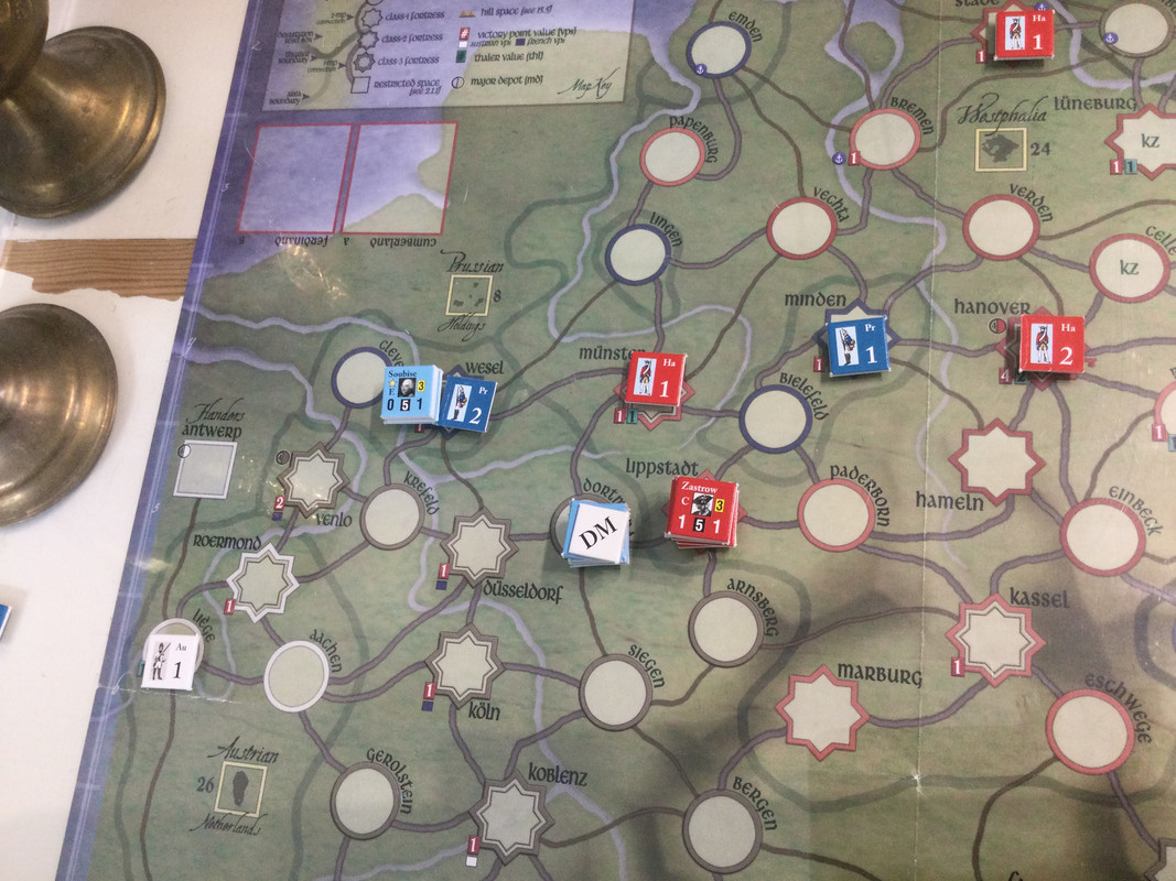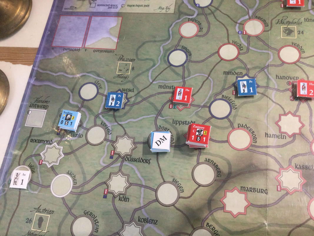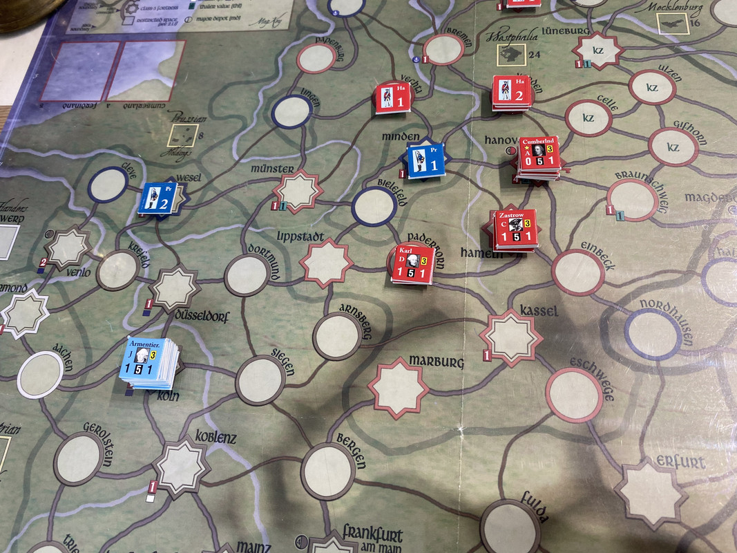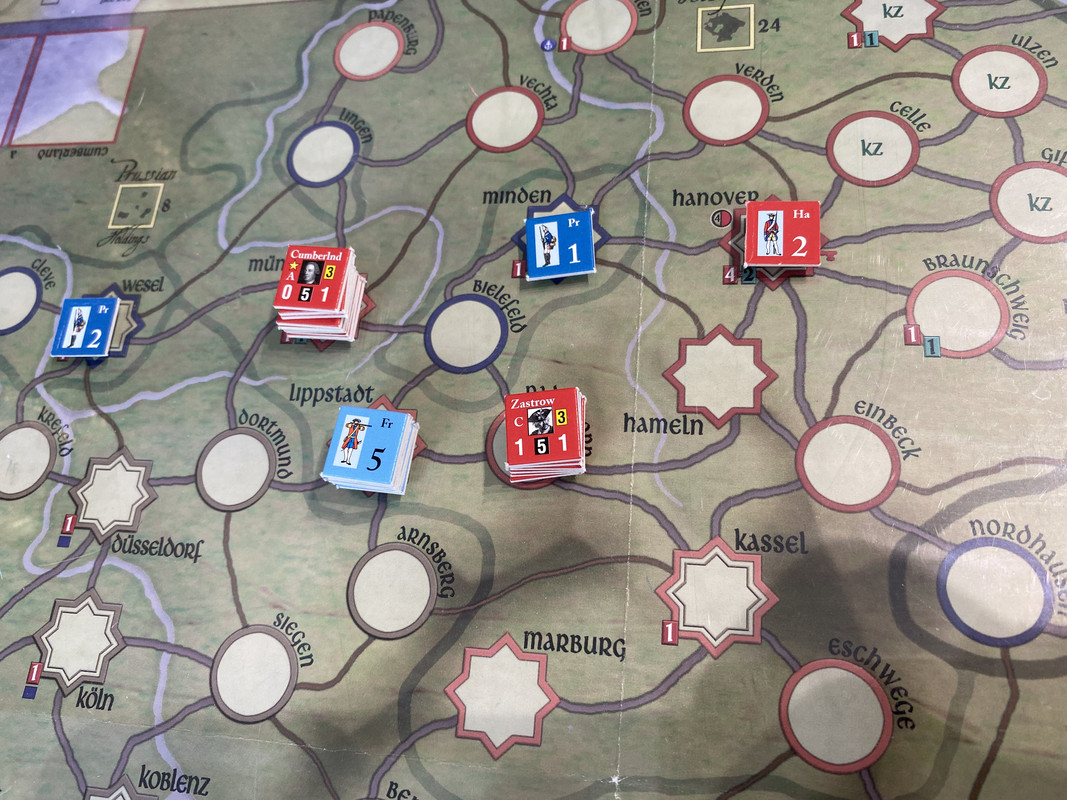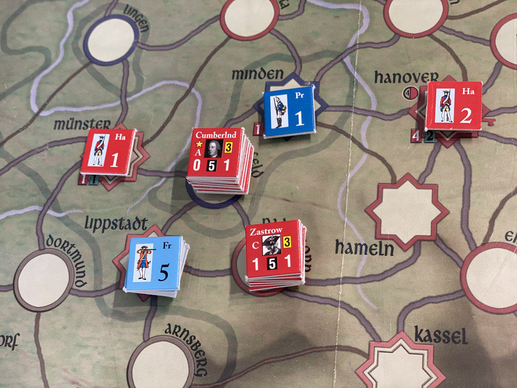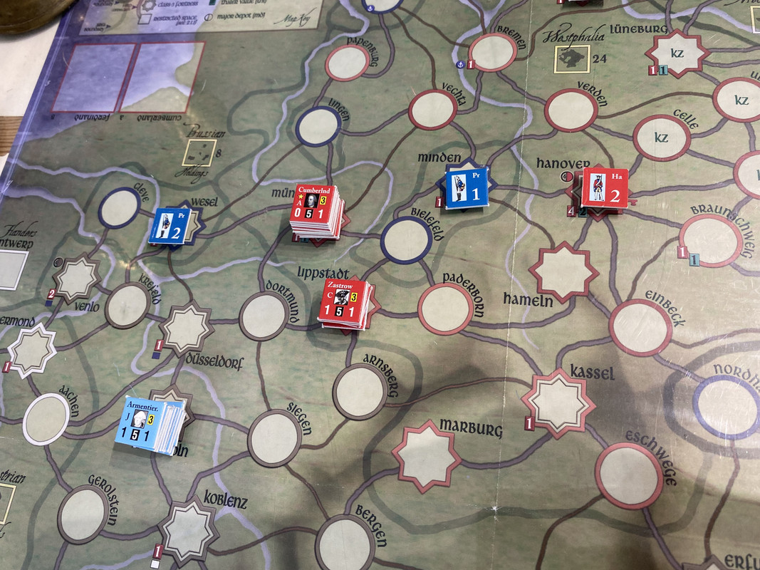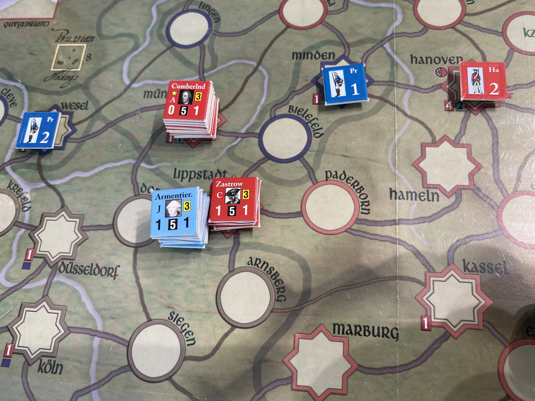 Armentiers fransmän marscherar över Dortmund mot Zastrow. Cumberland slöar och misslyckas genskjuta dem i Dortmund.
