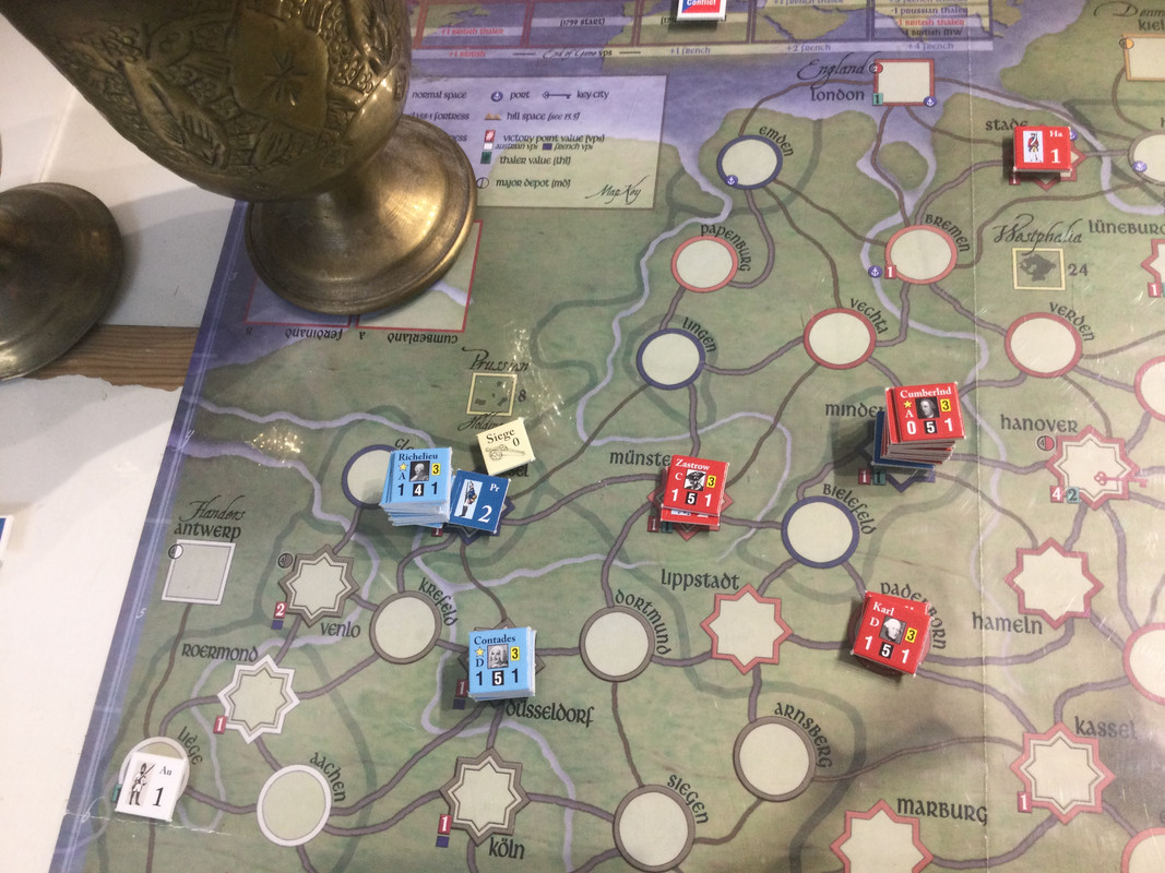 Både britter och fransmän sidor ägnar sig åt operationer i kolonierna istället vilket hanteras väldigt abstrakt i spelet. Detta då fransoserna är ledarlösa och Cumberland är såååå seeeeg.