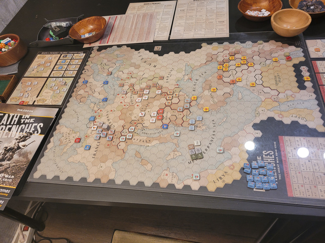 Death in the Trenches, Compass games. Ett Ben Madison-spel på strategisk nivå om WW1. Jag gillar verkligen designern och har stora förhoppningar om spelet. Det finns över 500 events (som sig bör i spel med självaktning) och ett stridssystem som är långt utanför lådan.