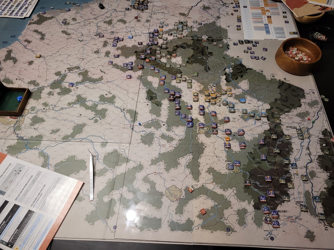 Jag tror att min offensiv med fransmännen gick av stapeln lite för tidigt, jag skulle kanske väntat några rundor. Samtidigt så kändes det frestande då tyskarna vara så svaga. Något att fundera på.