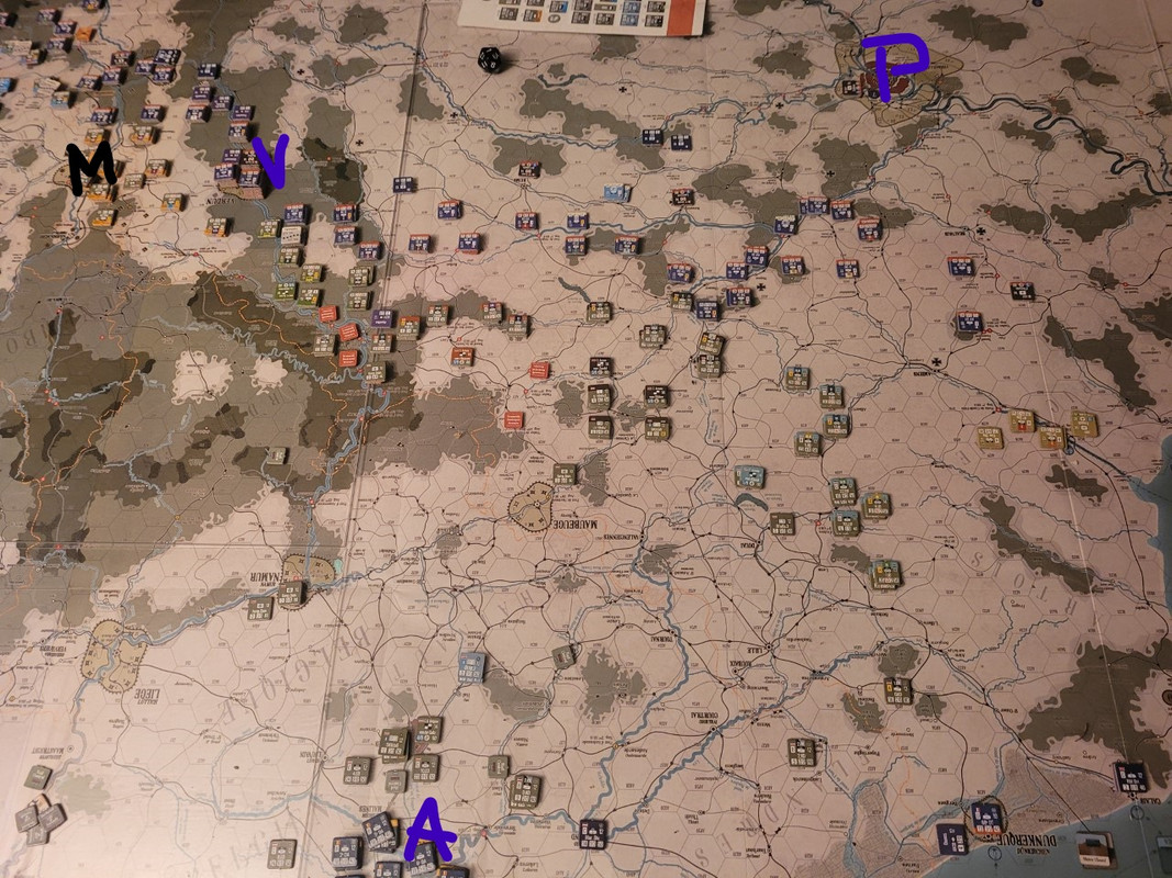 Tyskarna får VP för att hota Paris, så det här innebär att det är en kamp mot klockan. Det är ju för övrigt den här replayen också. jag tror att det kan bli rapport varannan turn från nu, så jag hinner spela på lite innan jag ska angöra de norrländska skogarna.