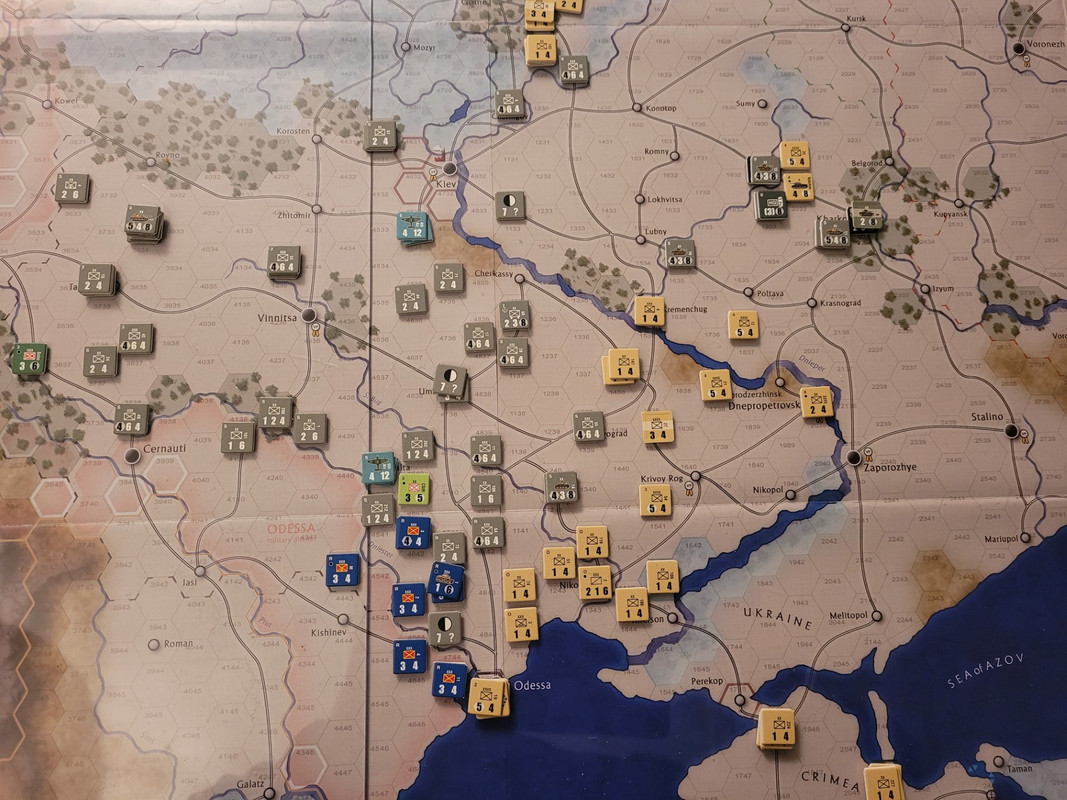 Stadens fall innebär att sovjeten nu förlorar 5 RP per turn, vilket motsvarar en armé. Det kan få betydelse i långa loppet. Tyskarna börjar den långsamma processen med att flytta stora mängder pansarförband ner mot Ukraina. Tur att det är bra terräng och fint väder...