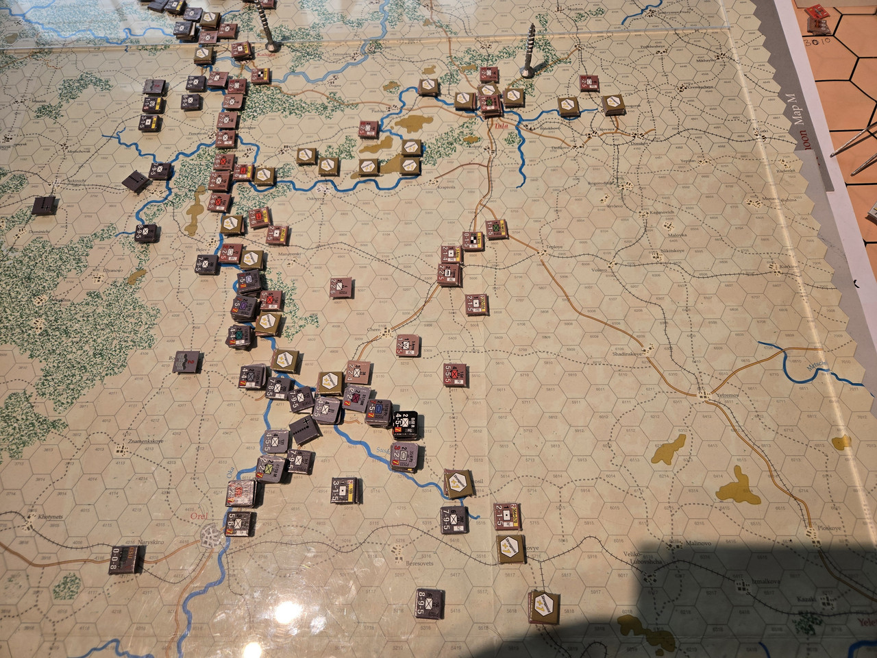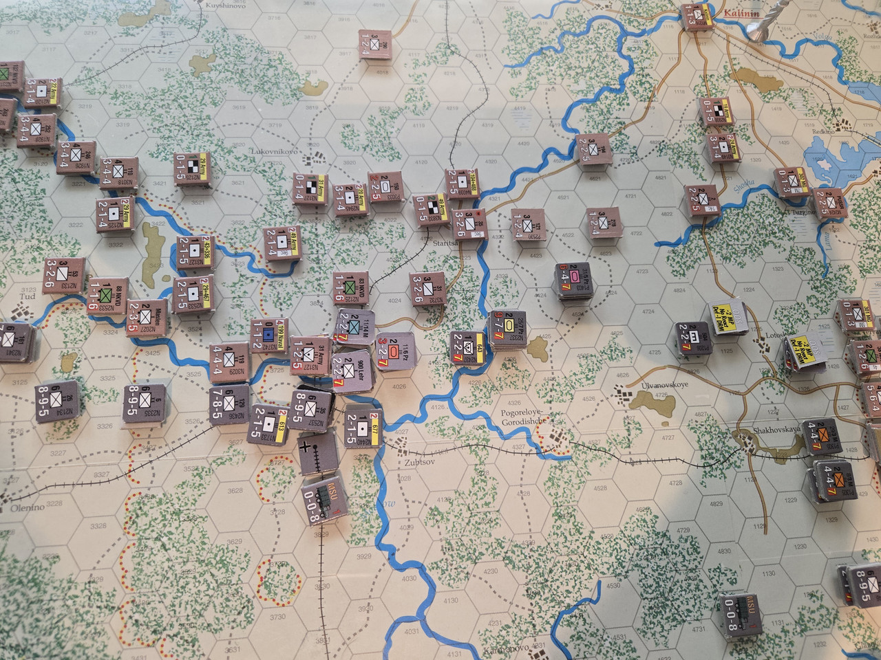 Den ryska offensiven tar ytterligare några hex i norr, men det kostar motsv två skyttedivisioner. 16 och 30 arméstaberna byter ansvarsområden. 16 är en väsentligt mer kapabel stab.