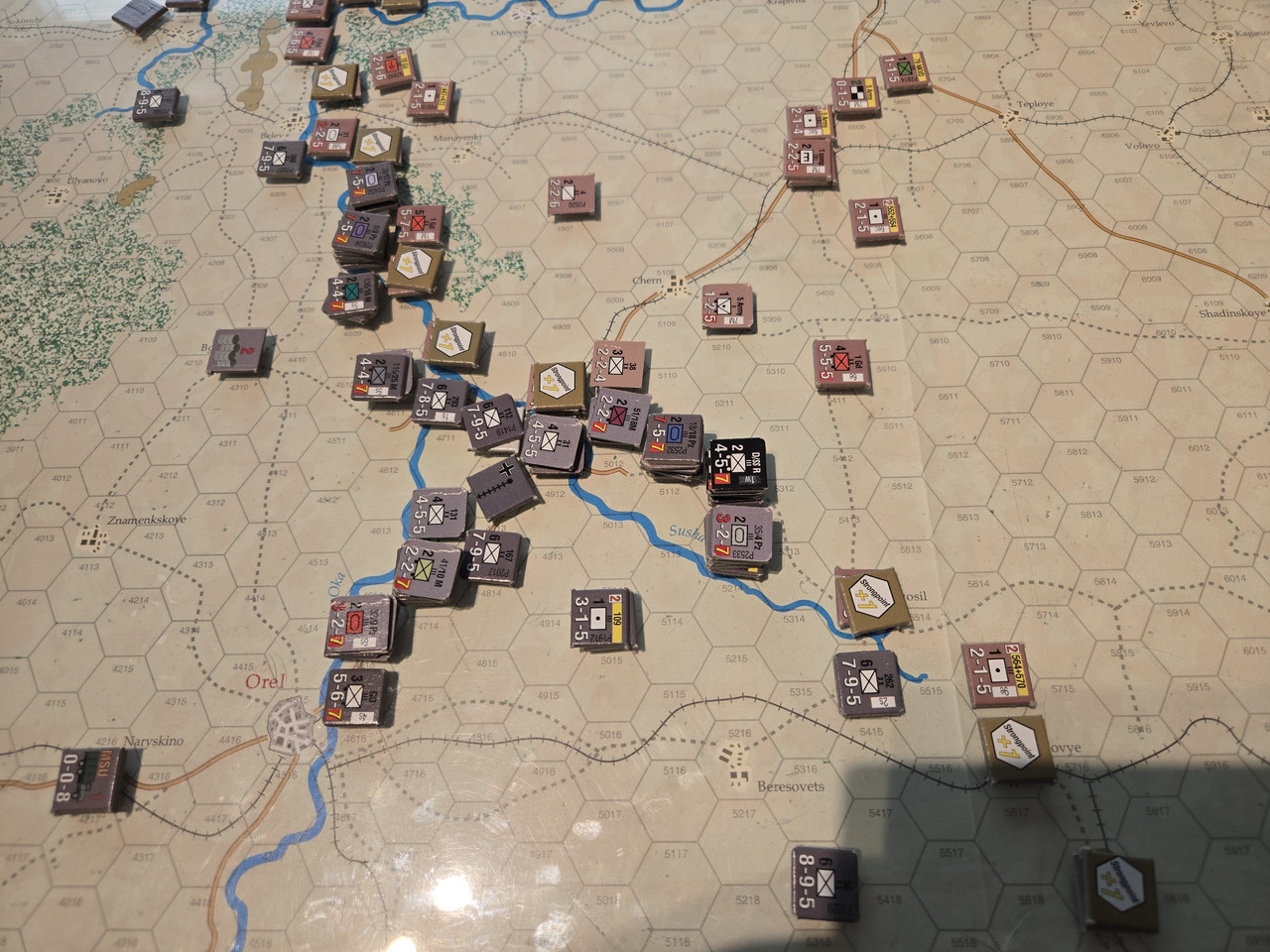 Orel håller ännu! Tysken har otur med tärningslagen/försvararna är heroiska som bara den! Men en ny tysk offensiv mot Kursk för dem till stadens portar.