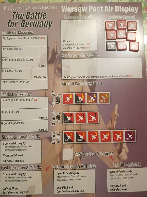 Det är en dag per turn, enheterna är divisioner (WP) och brigader (NATO), med lite breakdown-möjligheter för båda. De tre kartorna täcker södra Danmark ner till Alperna, som brukligt är (Köpenhamn och resten av Norden är modul tre, tvåan täcker Balkan och finns som pre-pub). Jag ska förklara lite olika element i spelet utifrån foton, jag är nämligen än så länge väldigt nöjd med vad jag ser och en hel del lösningar är sånt jag inte kan minnas att jag sett förut. Om det inte vore betygsättning just nu skulle jag gjort en replay på ett scenario, det här bör få mer uppmärksamhet i vår lilla hobby.