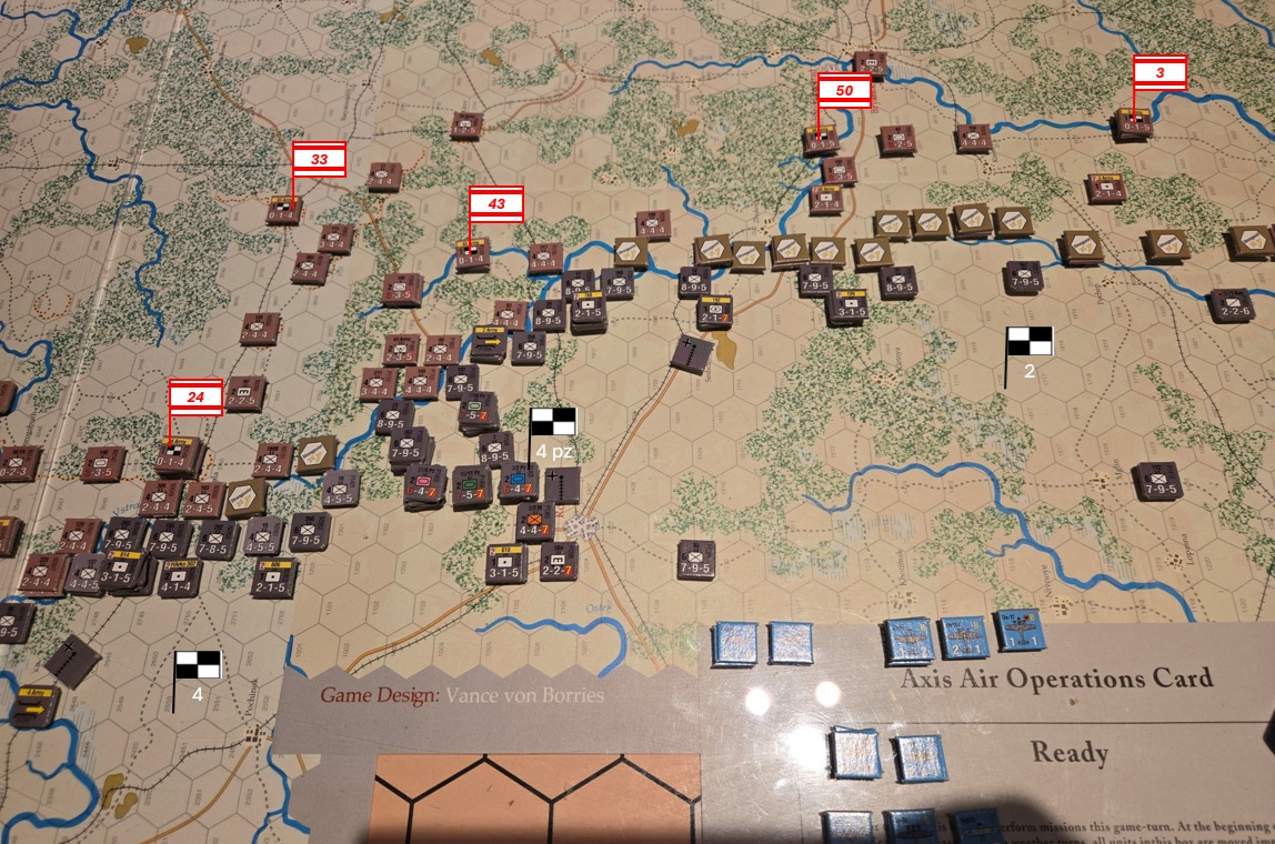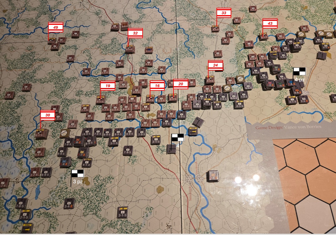 Hoths 3 pansargrupp har en ganska svag sektor framför sig som kan nyttjas GT 2 tillsammans med 4 armén mest norra infanteridivisioner.