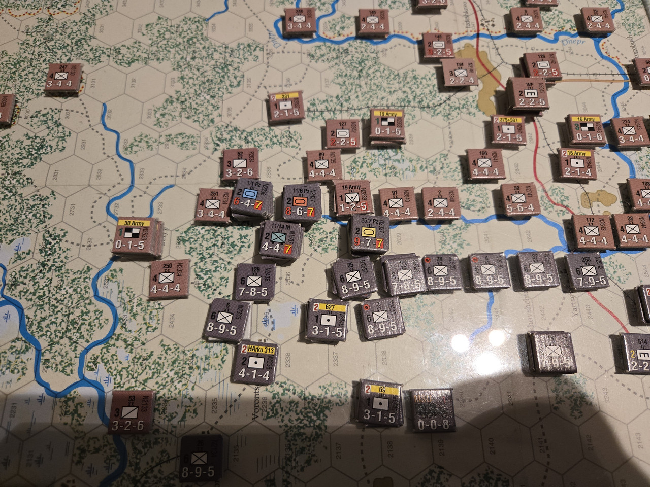 Dukning klar. Mindre än Army Group Center (som var så stort att vi inte kunde köra fälttåget i ett scenario utan fick köra det uppdelat i de två scenariona som avhandlar första halvan och andra halvan. Också mindre än Kiev to Rostov. Men absolut inte litet!