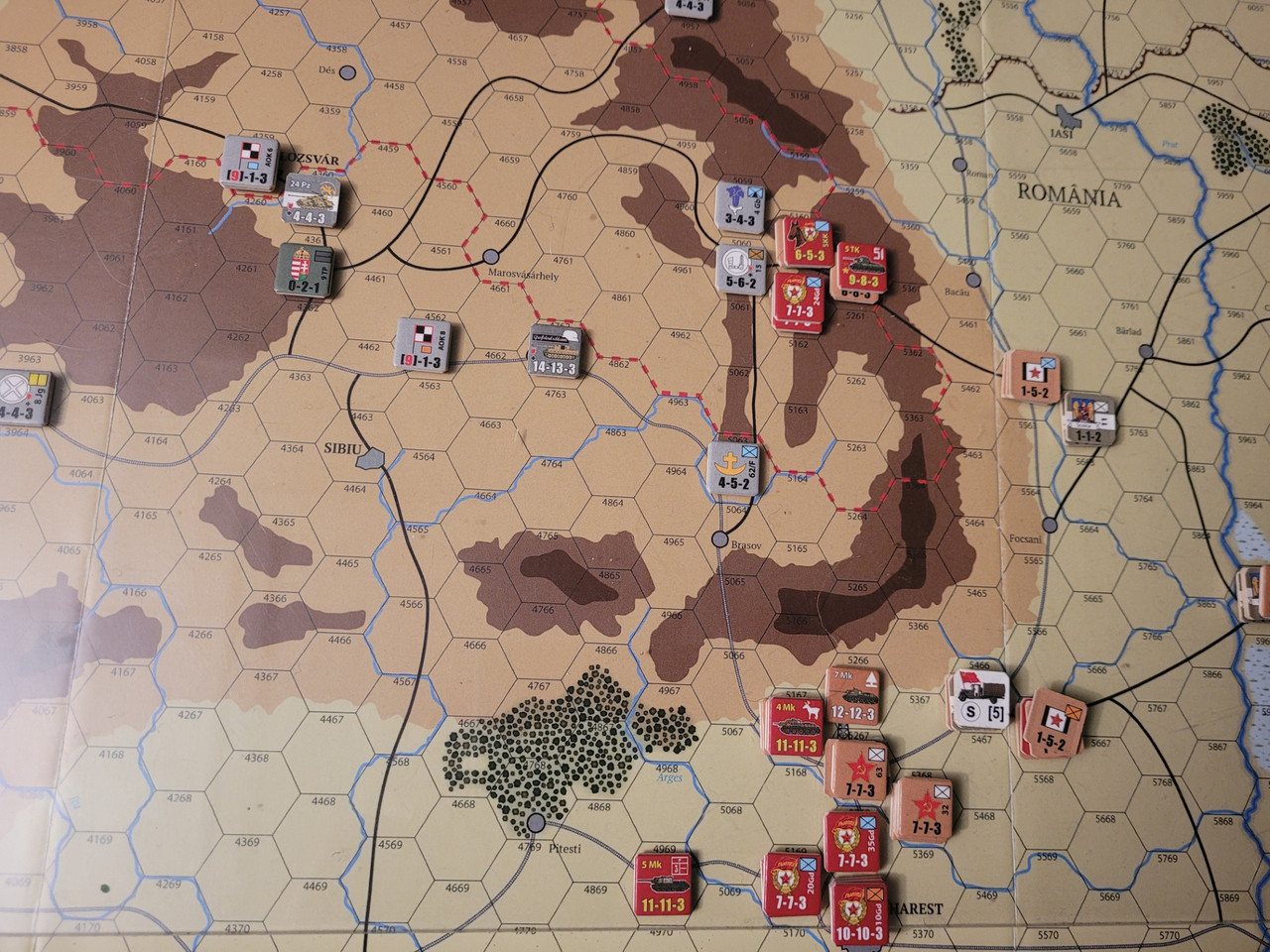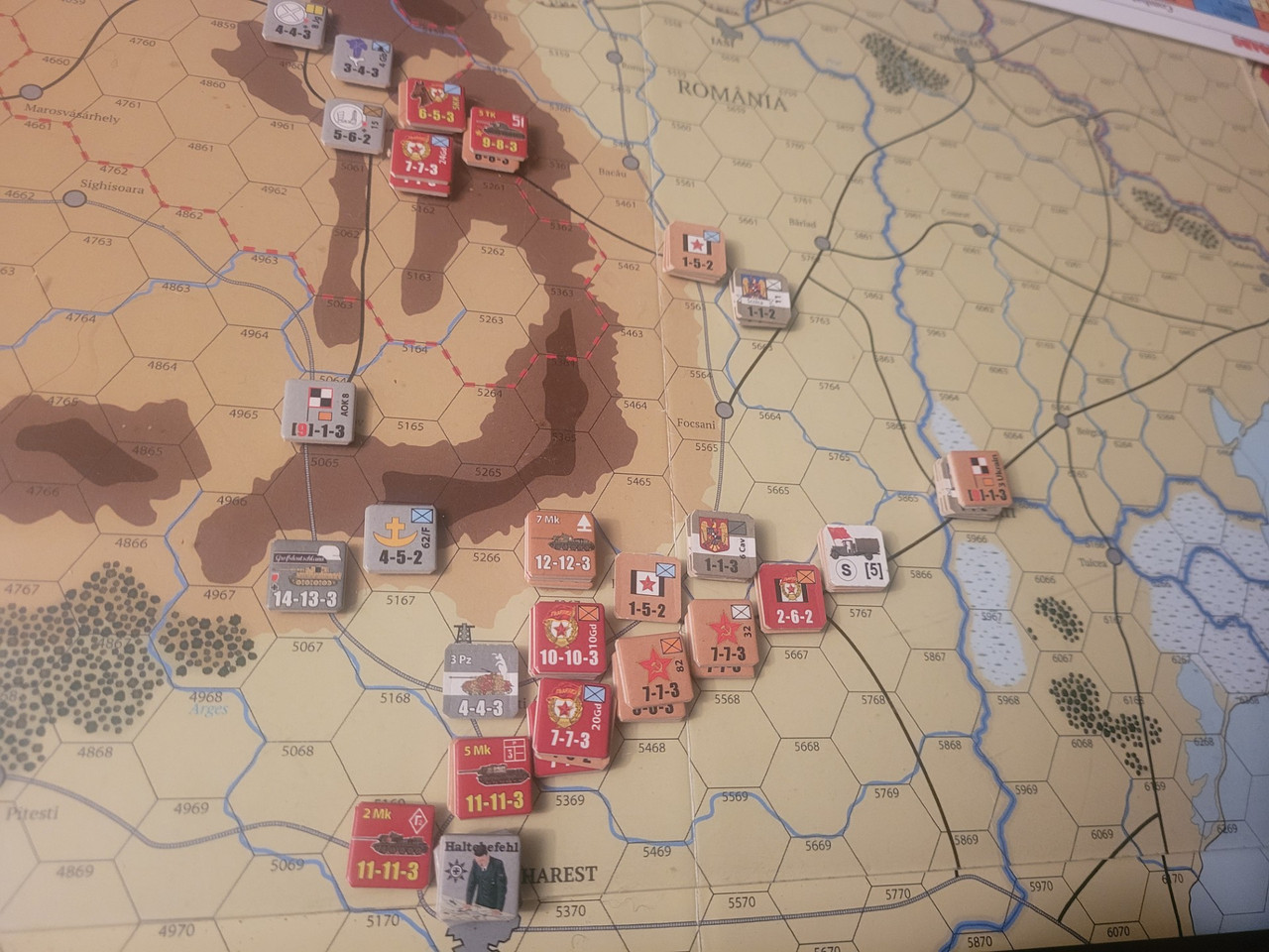 Längst ner i söder så anfaller sovjeten längs "hela" linjen och tyskarna blir tvungna att utrymma. Man lämnar en stridsgrupp som håller Ploesti en turn till och fästningen Bukarest hålls förstås, men sen lämnar man slättlandet.