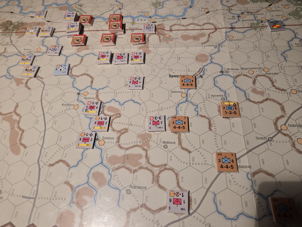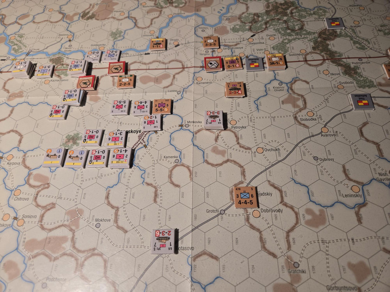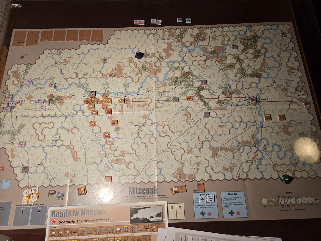 Dags för uppföljaren till Roads to Leningrad. Slagen som skildras är Mtsensk och Mozhaysk. Mozhaysk spelade vi för ett gäng år sedan i form av Clash of Arms Borodino 41.