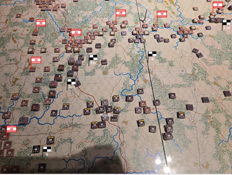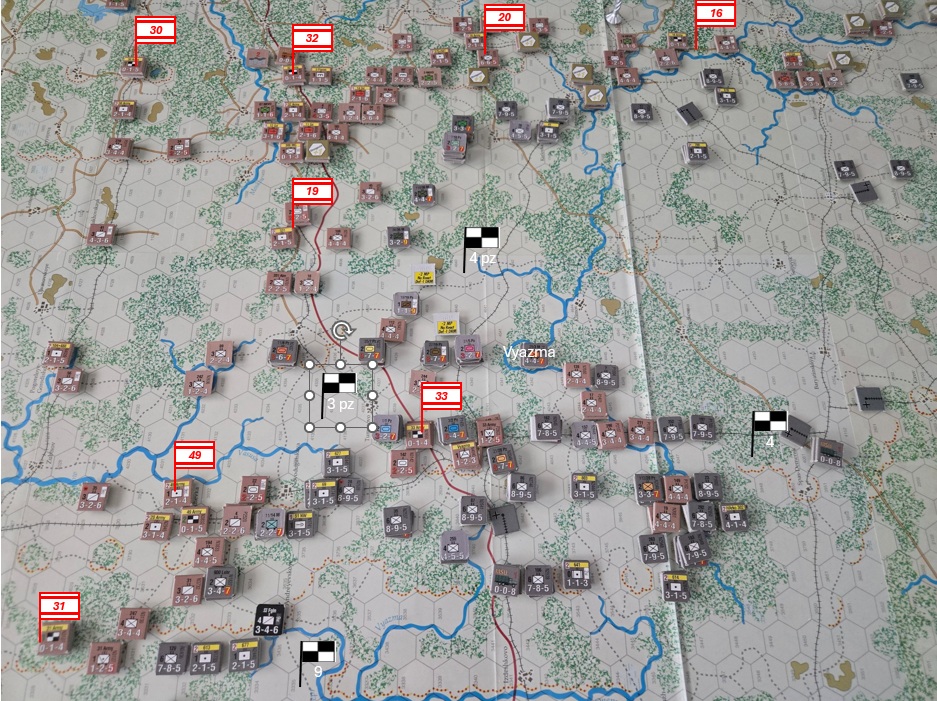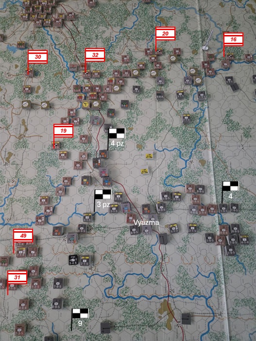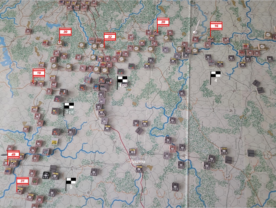 Vyazma faller och den sista inringade arméstaben slås. Det finns ännu kvar en skyttedivision och en pansarbrigad som avskär motorvägen norrut, så 4 pansargruppen har fortsatta logistikproblem. Stora delar av 4 armén binds av de många och faktiskt starka skyttedivisioner som skurits av söder om Vyazma.
