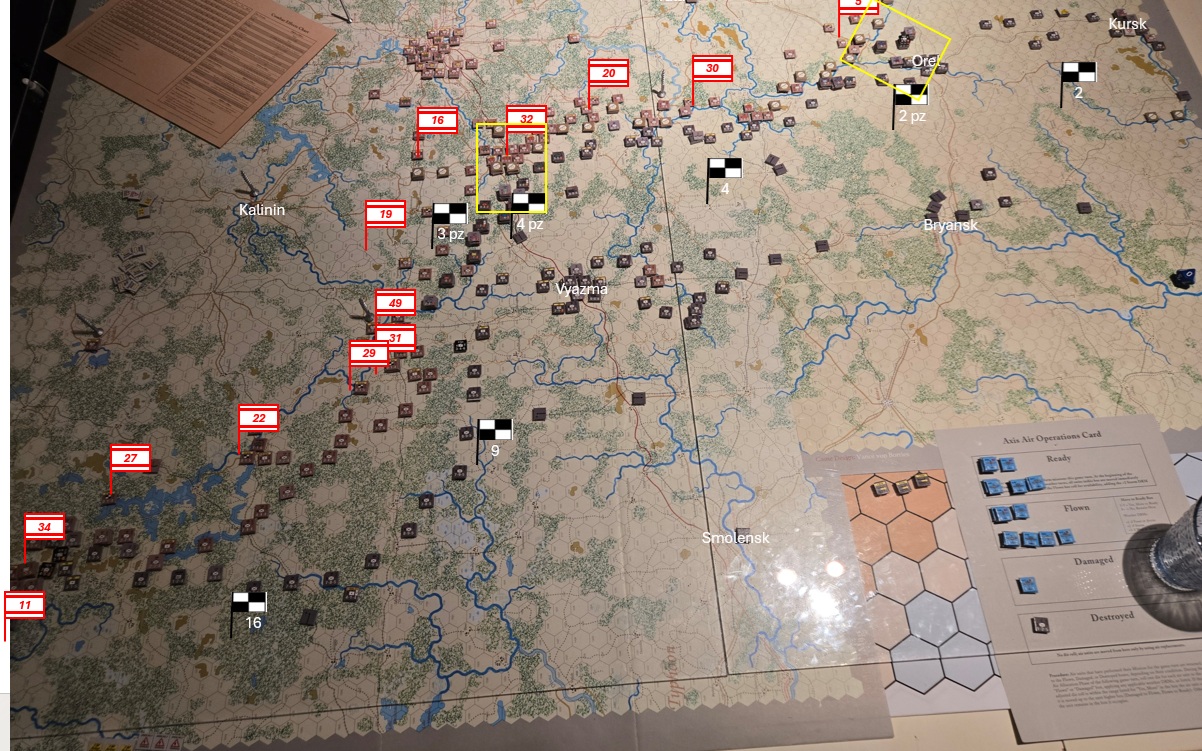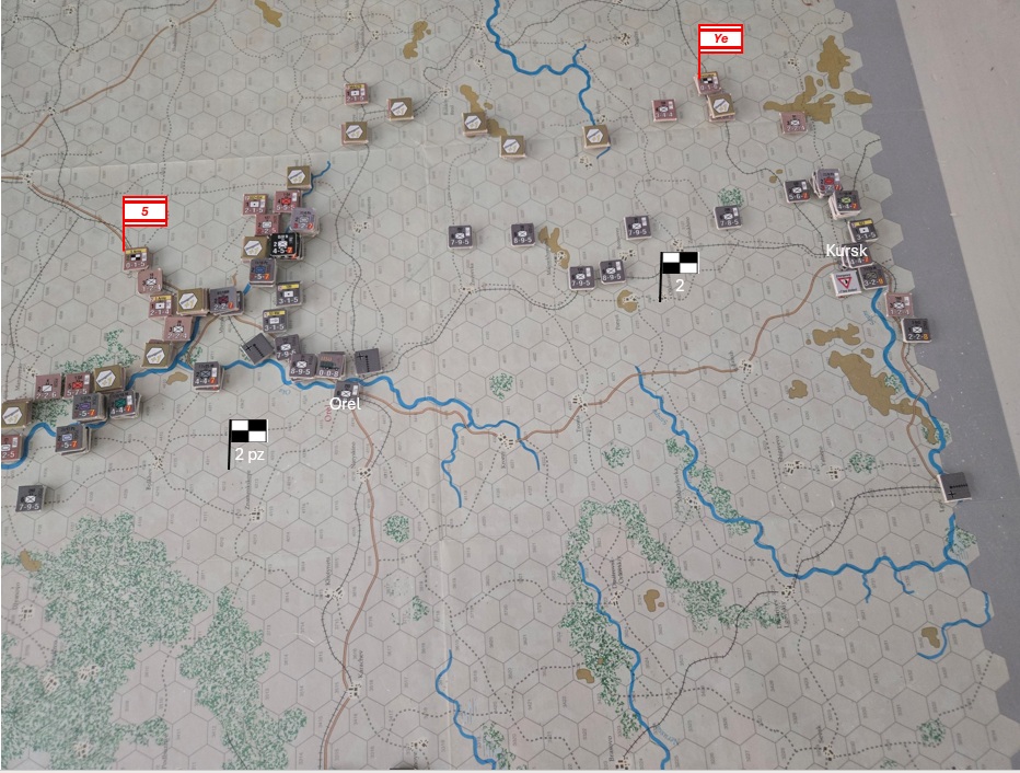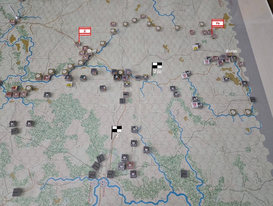 Orel håller ännu! Tysken har otur med tärningslagen/försvararna är heroiska som bara den! Men en ny tysk offensiv mot Kursk för dem till stadens portar.