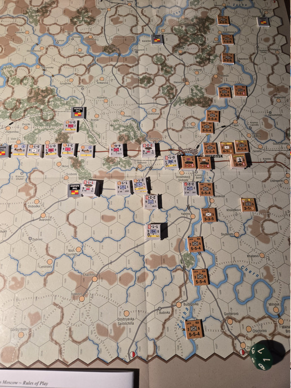 Ungefär lika mycket terräng har tagits som förra genomspelningen, men de tyska förlusterna är en bråkdel denna gång. Soviet marginal. Tja. Känns ju rimligt? Tysken har ännu inte tagit sig över vattendraget och knäckt försvaret så att anfallet mot Tula, och bortom det Moskva, kan fortsätta. 5 luftburna, 4 och 11 pansarbrigaderna är slagna för all del. Men de är ju förbrukningsvara. Tiden däremot, tiden är hårdvaluta för ryssen.